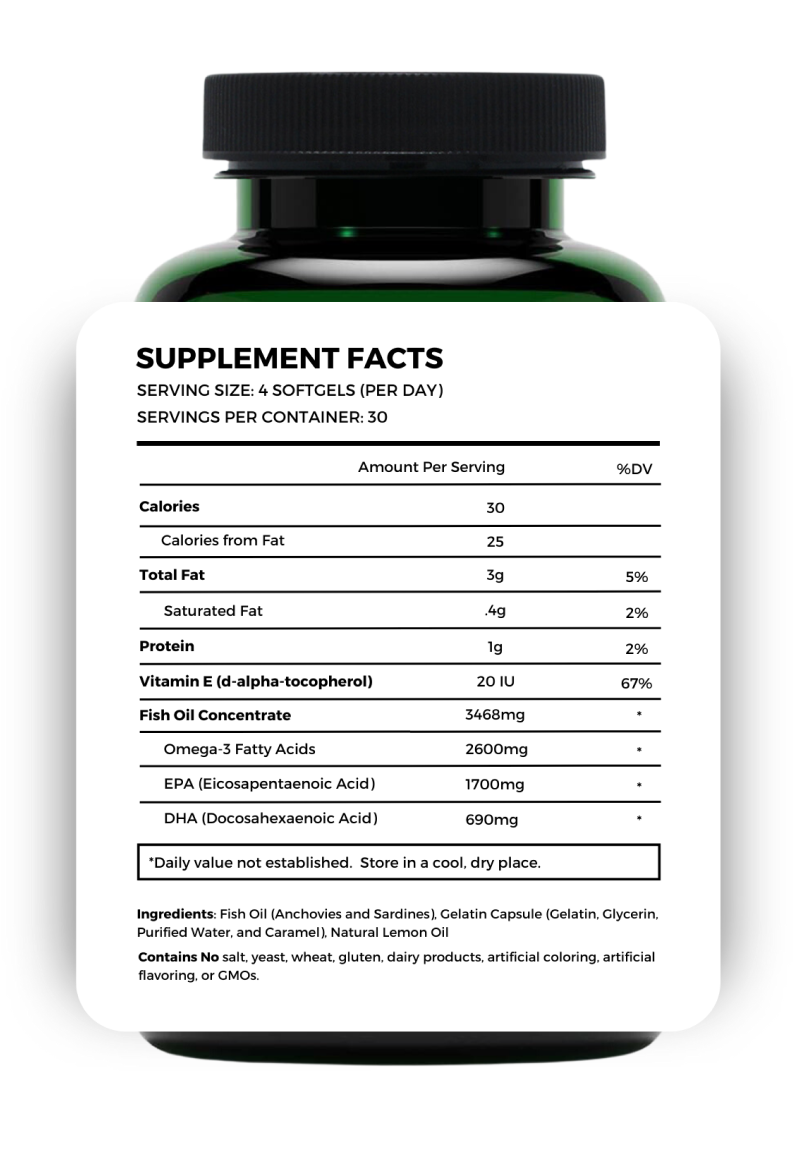 Delivers 3x more Omega-3s than standard fish oils. Each daily serving contains 2600 mg of Omega-3s, including 1700 mg of EPA and 690 mg of DHA.